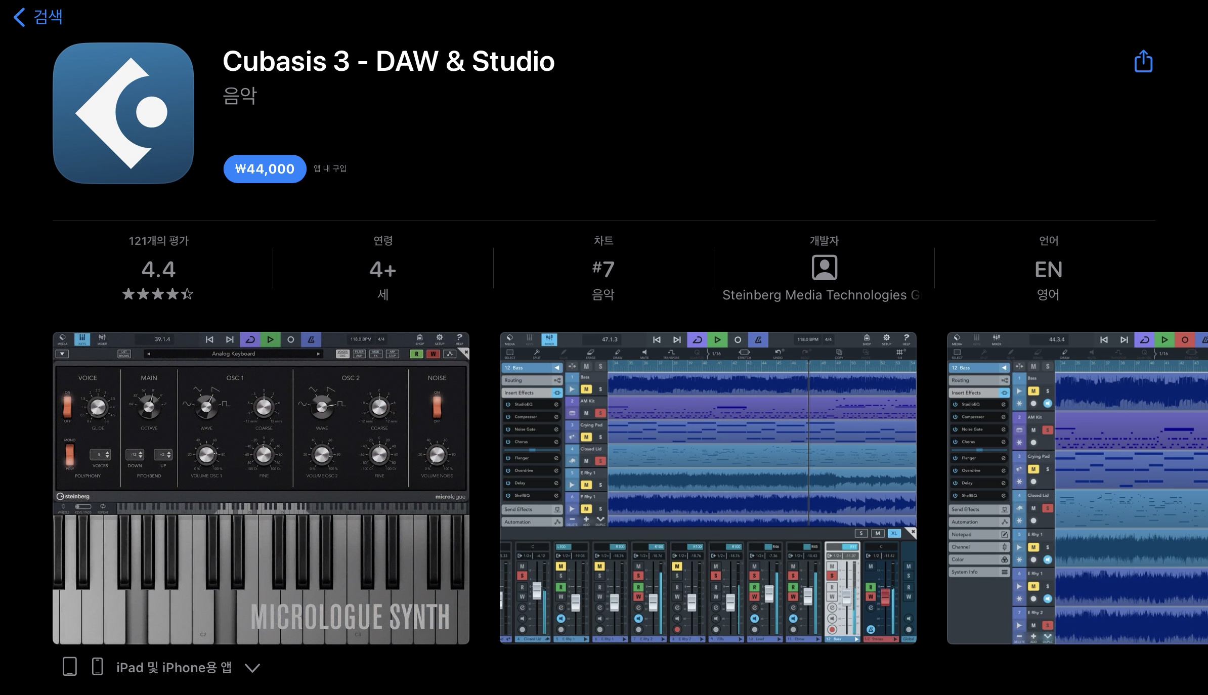 다행인건, 서드파티 어플의 경우 일괄구매나 무료로 기본사용이 가능한 어플이 많습니다. 대표적으로 다빈치리졸브 아이패드버전이 그렇고요, 미디쪽은 큐베이시스3 (4만 4천원) 그리고 밴드랩 아이패드판이 있다는 걸 같이 알려드리고 마치지요.